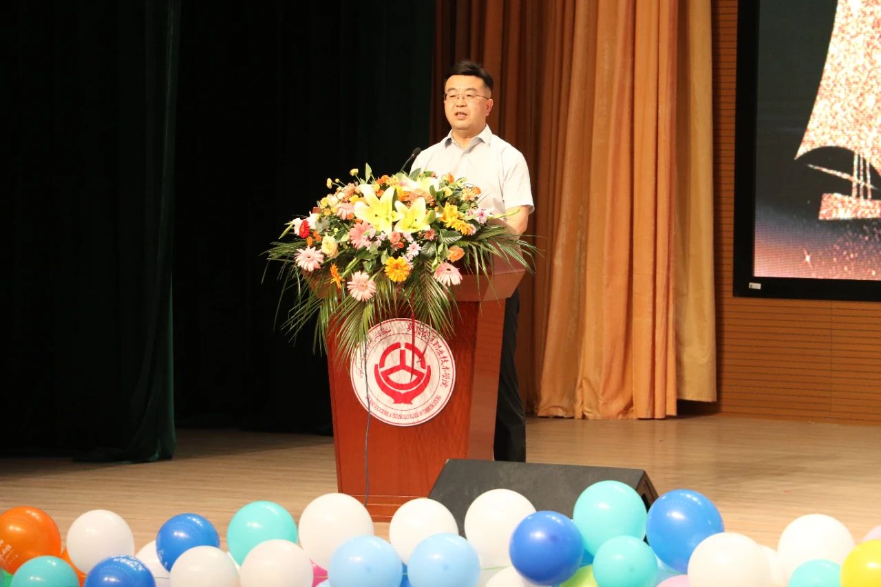典礼在雄壮的国歌声中拉开帷幕。学院党委副书记、院长何朴发表了热情洋溢的致辞,向圆满完成学业的毕业生表示热烈的祝贺和衷心的祝福,向悉心培育学生成长成才的老师们、家长们致以最崇高的敬意。何院长勉励全体毕业生,要做阳光自信的人,在未来的人生道路上,仰望星空,脚踏实地,不驰于空想,不骛于虚声,以实干为舟,以奋斗为桨;要做勤于学习的人,在未来的工作中,继续保持学习的动力,不断更新知识和实践能力;要做担当尽责的人,在未来的工作中,秉持“把责任放在第一位”的态度,以高度责任感、事业心认真对待每一项工作。