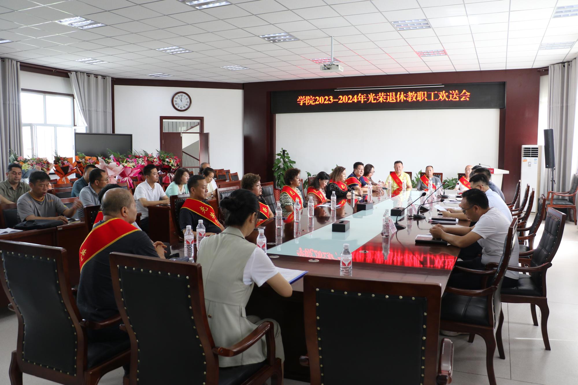 6月26日上午,学院在行政楼三楼大会议室举办了一场简单而温馨的退休教职工欢送会。学院党政领导班子成员、工会主席以及相关处室干部职工欢聚一堂,以最真挚的祝福,共同欢送退休教职工光荣退休。