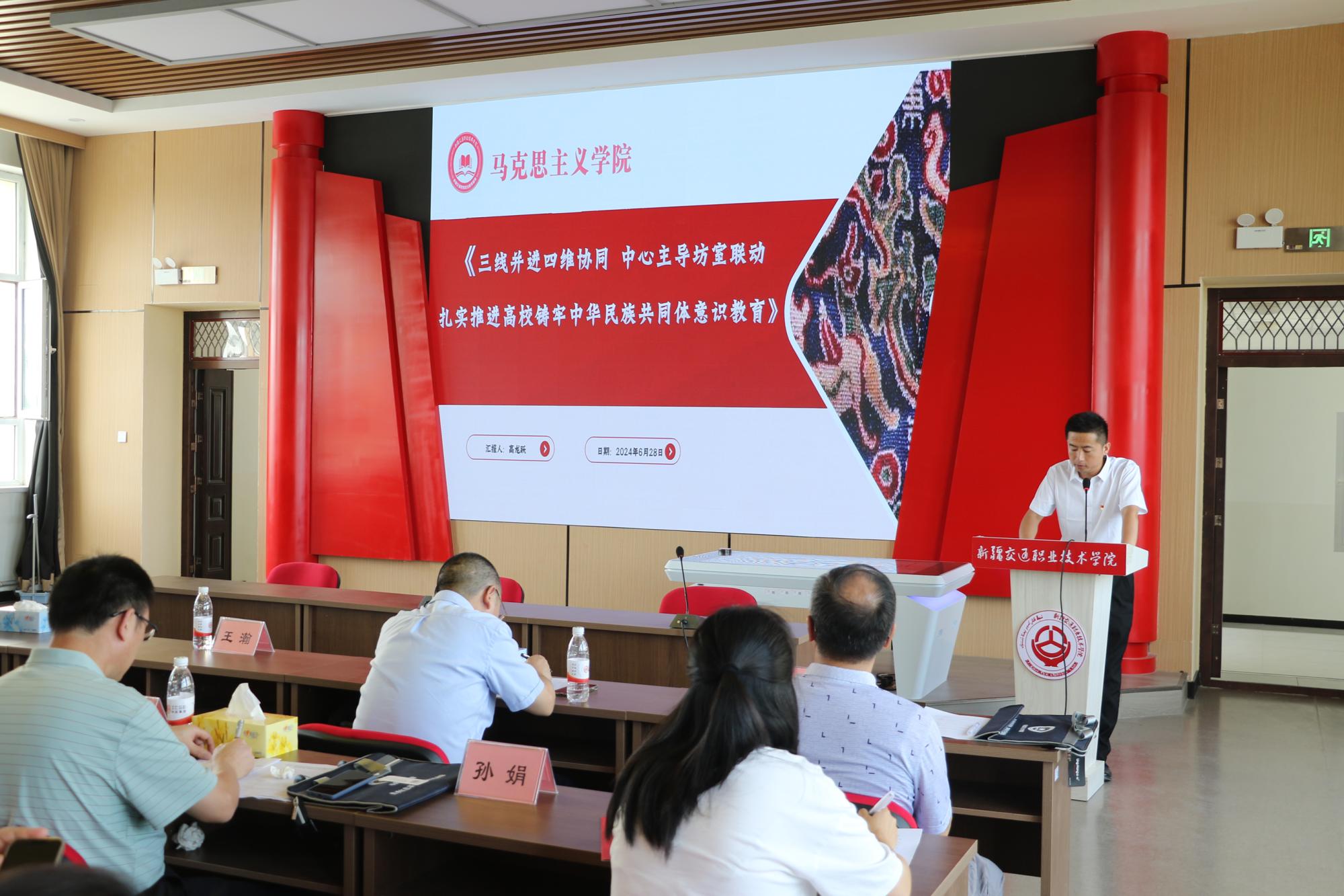 会上,新疆交通职业技术学院马克思主义学院副院长高龙跃做了题为《三线并进四维协同 中心主导坊室联动扎实推进高校铸牢中华民族共同体意识教育》的发言。各院校结合本校特色分享了在铸牢中华民族共同体意识教育中的成功经验做法,为各院校今后开展铸牢中华民族共同体意识教育提供了新的思路和方向。