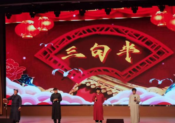 晚会现场,精彩的节目轮番上演。《为祖国喝彩》震撼了全场,动感十足的舞蹈瞬间点燃了现场的气氛,他们身姿矫健,舞步灵动,用舞蹈诠释着对祖国的赞美和热爱。幽默风趣的小品表演《三句半》,引得全场阵阵笑声,同时也传达了积极向上的价值观。新生带来的《崇拜》《晚安》《向云端》等歌曲,歌声清澈悦耳,仿佛天籁之音,让同学们沉浸在音乐的海洋中。特别是由娜仁高娃和卡德英两位老师带来的爵士舞,灵动的舞步、富有节奏感的韵律,让同学们看到了老师们别样的风采,打破了传统的师生界限,拉近了彼此的距离。李大严副院长倾情演唱的《苹果香》将此次晚会推向了高潮,悠扬的旋律、深情而温暖的歌声,打动着在座的同学们,大家纷纷挥舞着荧光棒,现场气氛热烈而欢快。这一刻,晚会璀璨,情谊绵延,师生共同感受着这场晚会带来的独特魅力。