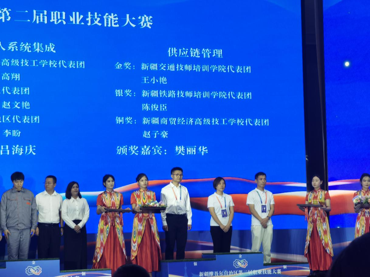学院共选派24名选手参赛,经过两天激烈角逐,共获得1项金奖和10项优胜奖。运输管理学院王小艳和苏杜彪老师获得供应链管理赛项金奖和优胜奖,实现该赛项历史最好成绩。汽车工程学院选派寇星源与富雅捷、杨文凯与范柳婷组成两支职工队参赛,获得新能源汽车智能化技术优胜奖;阿以波力·巴合提别克、李轲然、周嘉成三名学生分别荣获汽车技术赛项个人优胜奖。人工智能工程学院吾米提·米克尔江和李杰两位同学组队参赛,获得网络安全赛项团体优胜奖;张强同学获得信息网络布线赛项个人优胜奖。机电工程学院孙超和王俊心两位同学获得机电一体化赛项团体优胜奖;王伟凯和魏江涛两位同学获得机器人系统集成赛项团体优胜奖。