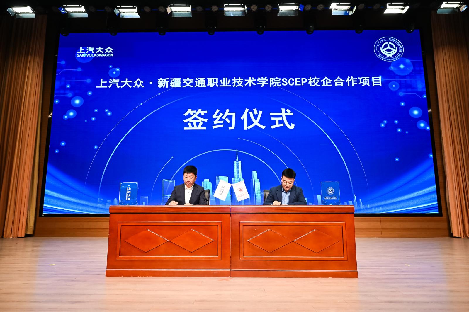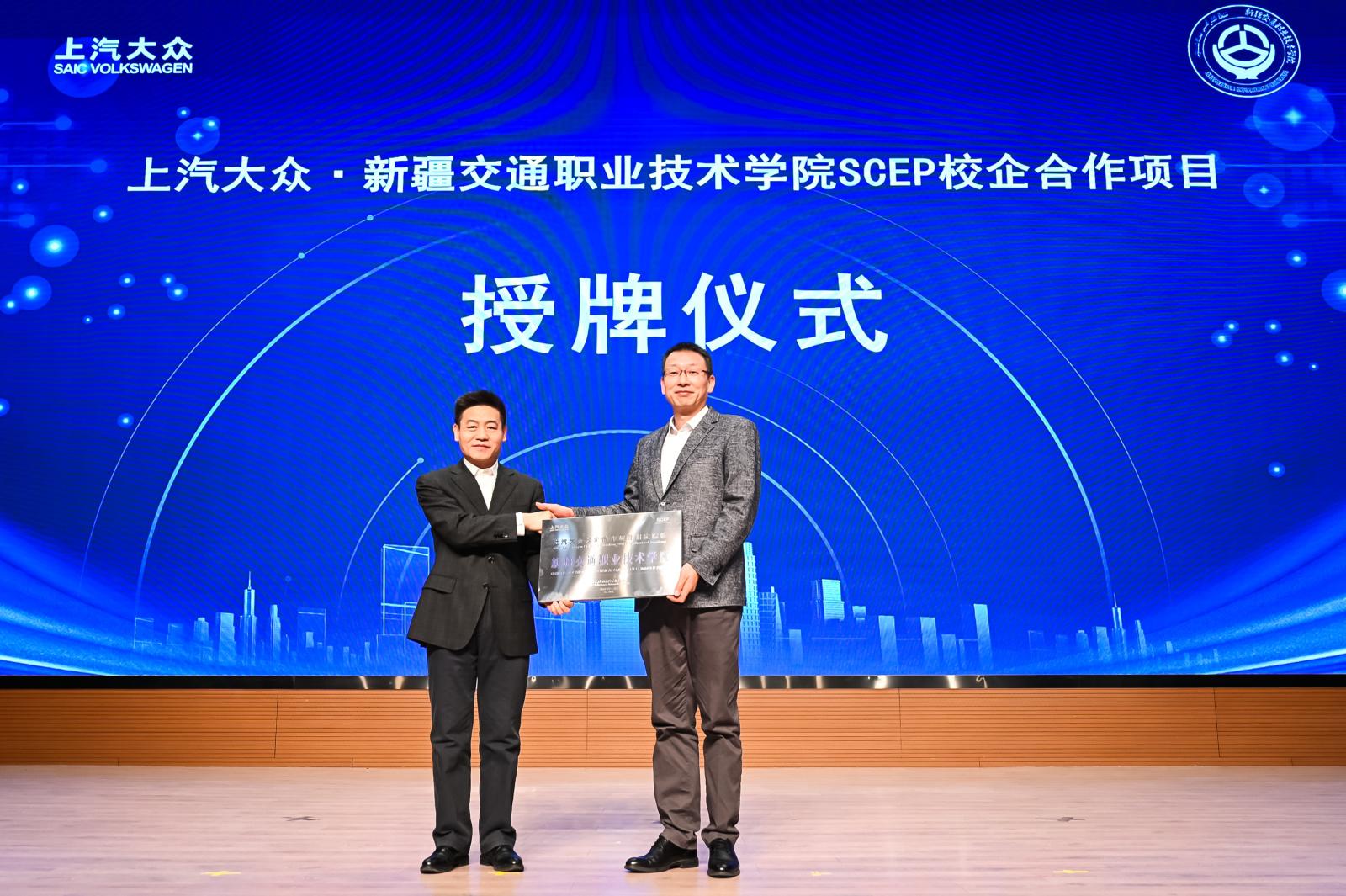 在现场嘉宾的见证下,上汽大众与新疆交通职业技术学院代表共同签订了校企合作项目协议书,并举行了培训基地揭牌仪式,标志着双方的校企合作正式启动,双方合作的培训基地正式投入使用。