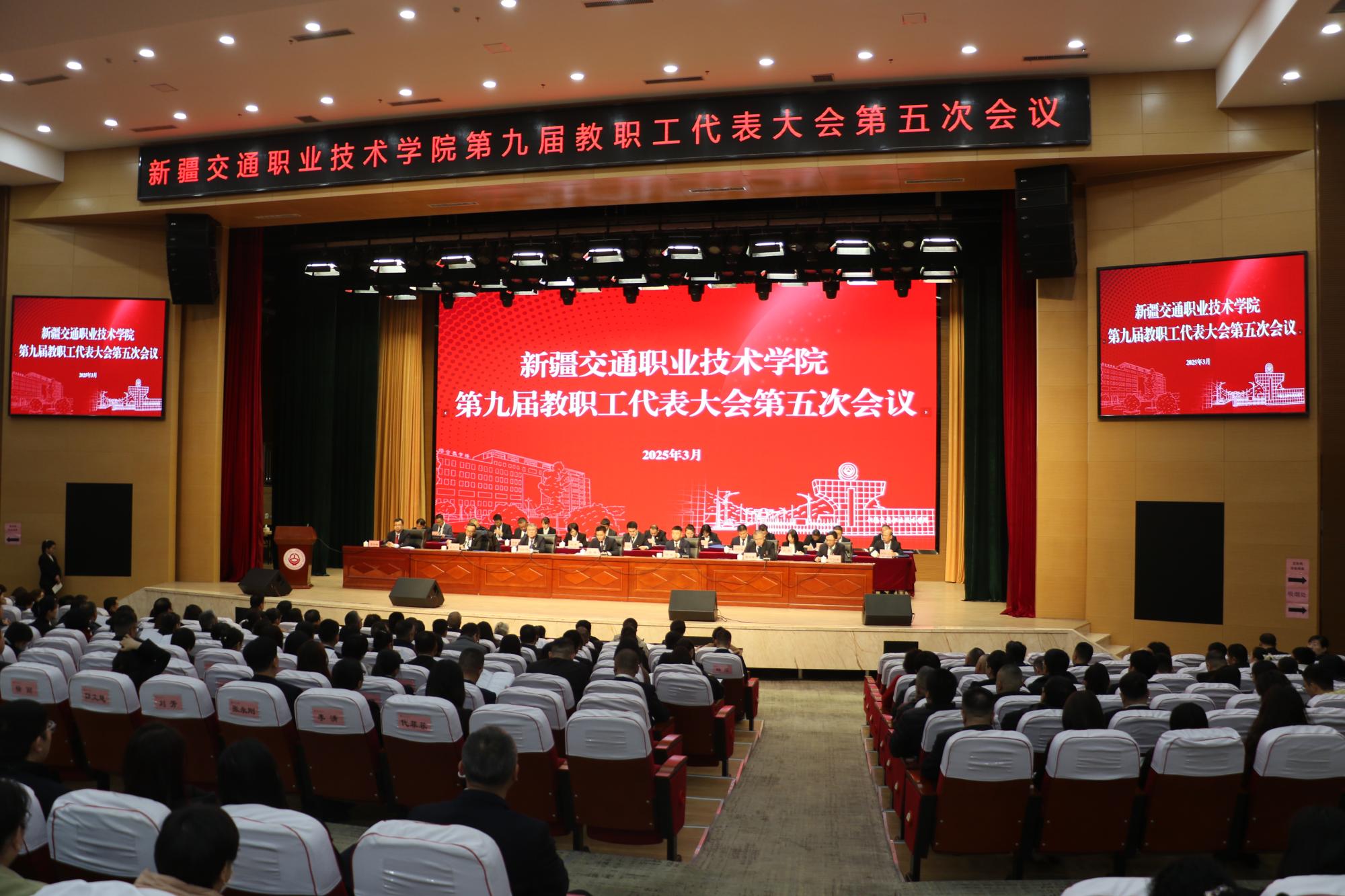3月22日,新疆交通职业技术学院第九届教职工代表大会第五次会议在产教融合楼礼堂召开。学院党委书记王瀚出席会议并讲话,学院党委副书记、院长何朴作学院工作报告。正式代表、特邀代表、列席代表、部分教职工近500人参加会议。