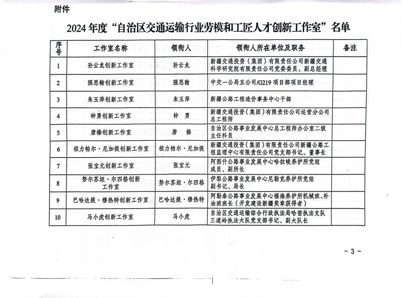 近日,自治区交通运输厅发布《关于命名一批2024年自治区交通运输行业劳模和工匠人才创新工作室的通报》,经层层申报、综合评审,学院马克思主义学院徐瑾创新工作室成功入选,被命名为2024年“自治区交通运输行业劳模和工匠人才创新工作室”。