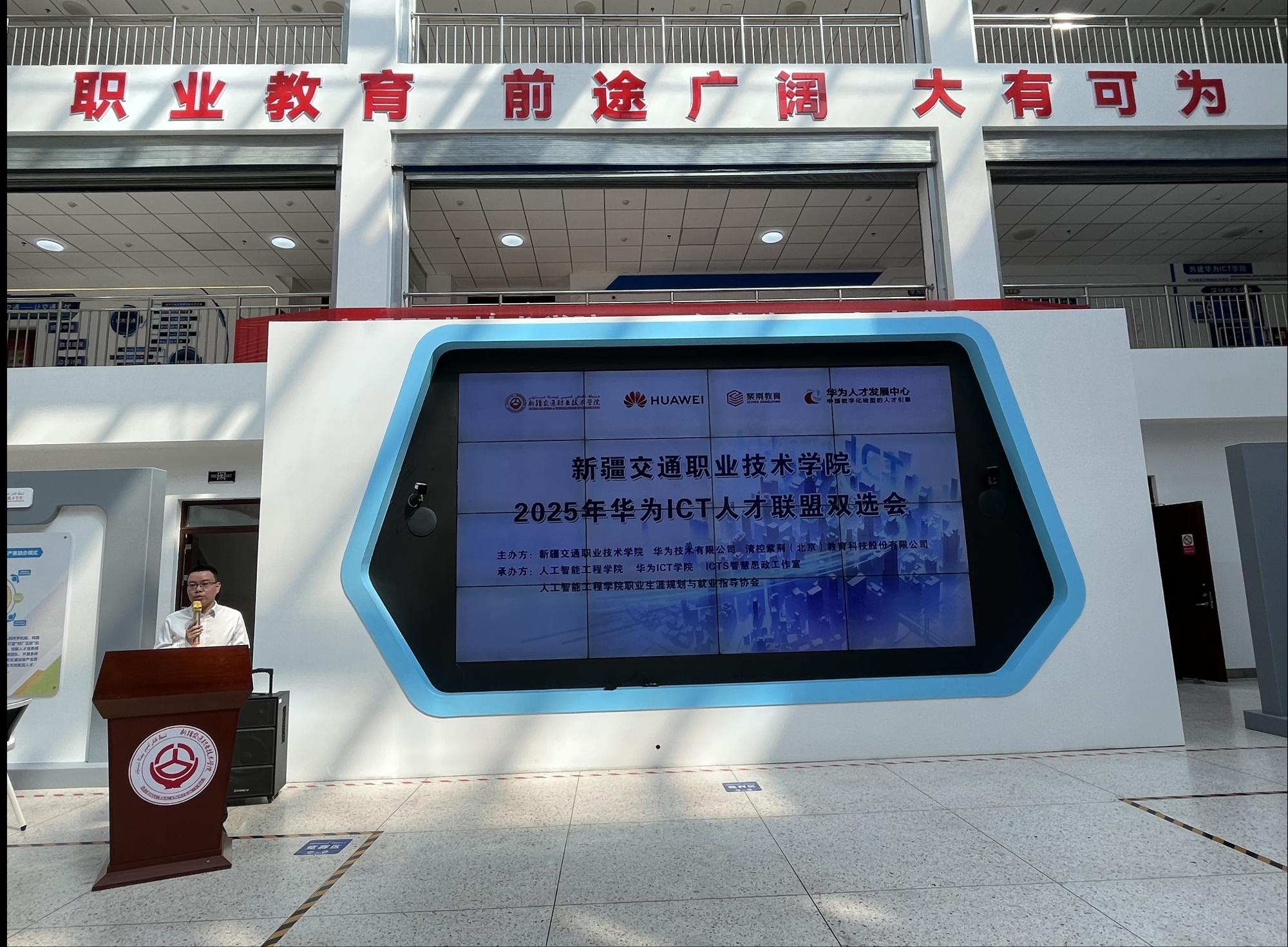 5月14日,学院2025年华为ICT人才联盟双选会圆满落幕,此次活动由新疆交通职业技术学院、华为技术有限公司、清控紫荆(北京)教育科技股份有限公司联合主办,学院党委书记王瀚、华为技术有限公司新疆政企业务部副总经理范朝军出席大会并讲话。