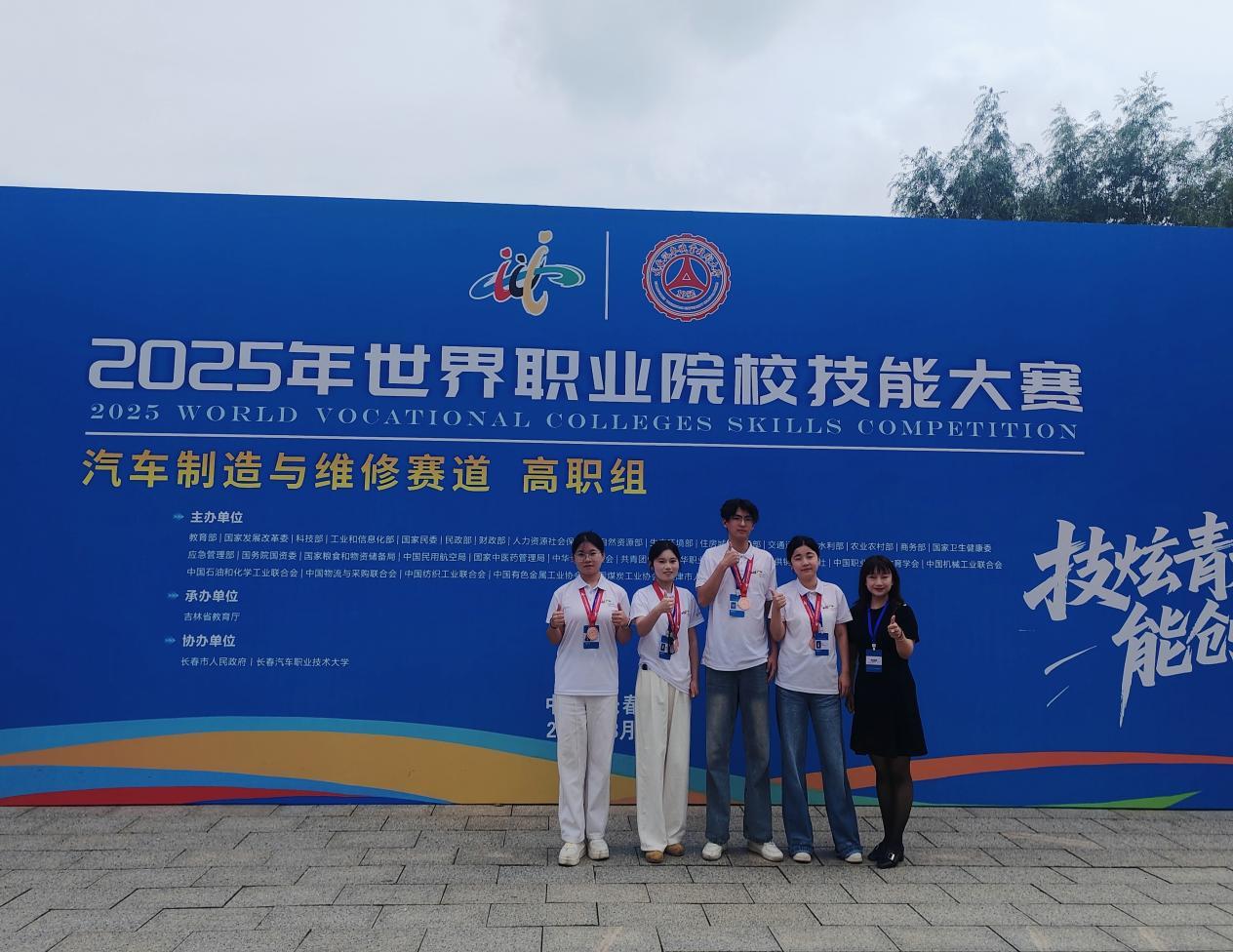 2025年世界职业院校技能大赛总决赛汽车制造与维修赛道(高职组)争夺赛于8月31日在长春汽车职业技术大学圆满落幕。由我校熊世豪、吴玉沁、孙女明、王毅帆四位同学组成的参赛队,凭借扎实的专业技能、出色的问题解决能力和稳定的现场发挥,在全国186支参赛队伍、700余名选手中脱颖而出,荣获大赛铜奖。