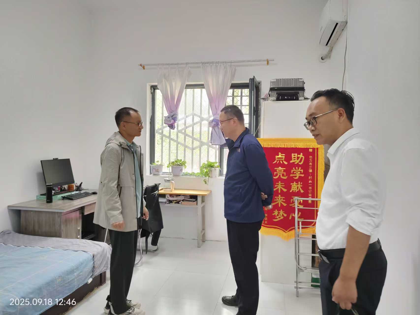 刘洪波一行实地查看两村的村容村貌,细致走访村委会办公、生活等区域,并与大家亲切交流,关心询问队员工作生活状况和实际困难。座谈会上,刘洪波认真听取驻村工作队近期工作汇报,对工作队展现出的良好精神面貌和取得的初步成效给予了充分肯定,强调学校始终是工作队的坚强后盾,将全力解决大家的后顾之忧,并就下一步工作提出五点要求:一要坚决抓好安全稳定工作,时刻紧绷安全稳定这根弦,确保属地持续和谐稳定;二要持续建强基层党组织,协助村“两委”不断提升履职能力和战斗力,使其真正成为乡村振兴的核心力量;三要全力推进强村富民工程,拿出真招实策,不断提升群众的获得感、幸福感、安全感;四要不断提升基层治理水平,充分发挥“桥梁纽带”作用,构建和谐有序的乡村环境;五要扎实推进为民办事,以务实举措闭环解决群众困难,确保党的惠民政策落地见效。他希望全体队员继续发扬优良作风,坚守为民初心,在当地党委、政府领导下,为乡村振兴和长治久安作出更大贡献。