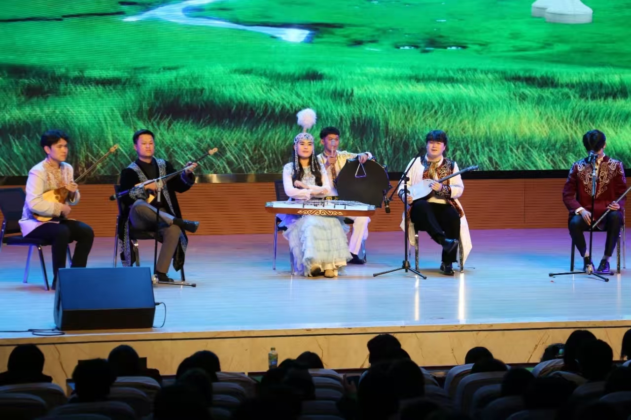 整场演出构思精巧、内涵丰富,如同一幅徐徐展开的中华文化绚丽长卷。活动在展现多民族风情交融的《舞乐新疆》串烧舞蹈中热烈开场。随后,《十二木卡姆》经典片段《且比亚特木卡姆》带领观众穿越时空,感受非遗艺术的厚重底蕴;二胡重奏、古典舞、京剧选段、冬不拉合奏等节目接连上演,尽显艺术的丰富多样与永恒魅力。