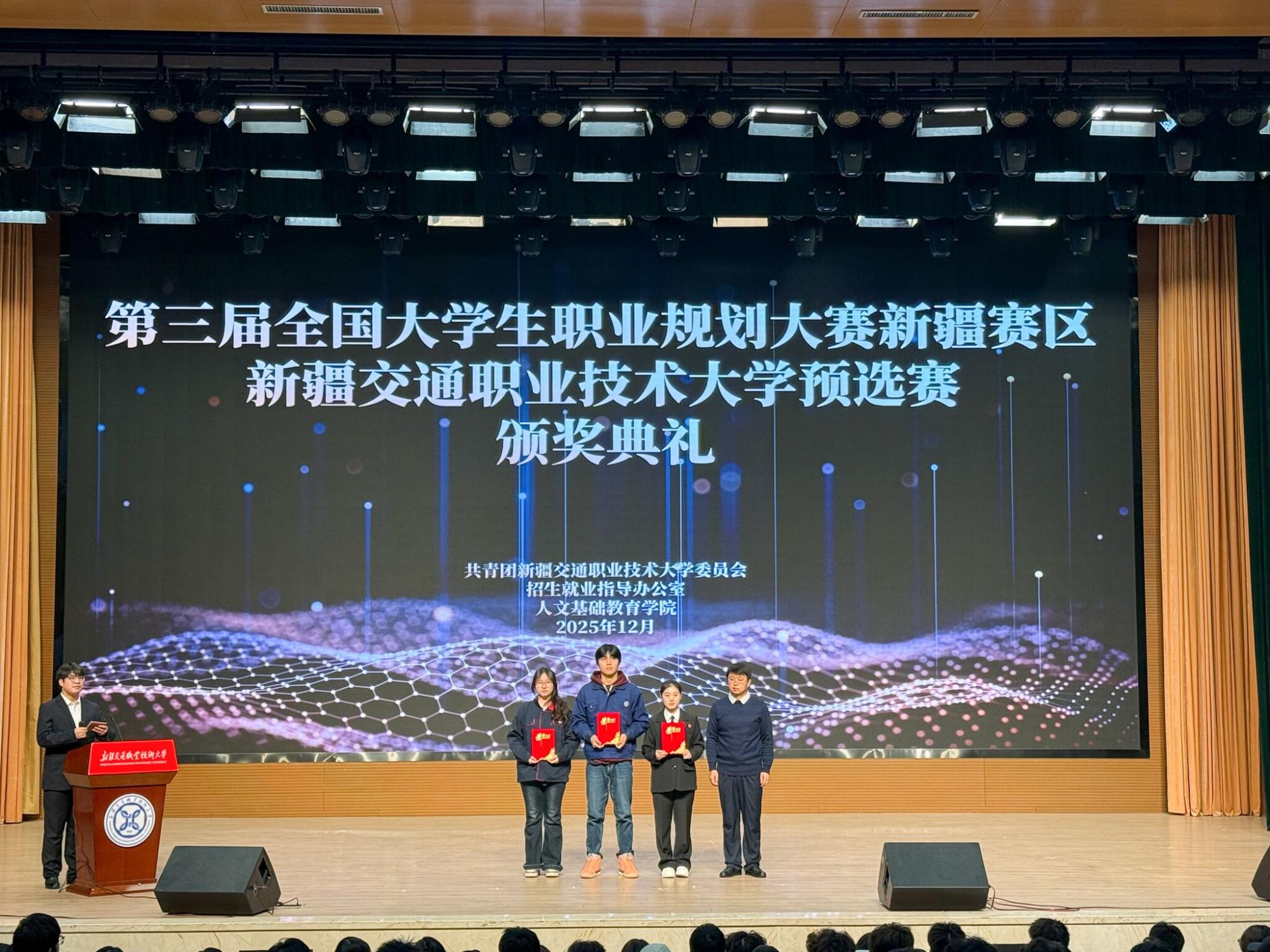 12月31日下午,第三届全国大学生职业规划大赛新疆赛区pp电子官方网站预选赛在产教融合楼大礼堂举行。校党委副书记王瀚出席颁奖仪式并讲话。