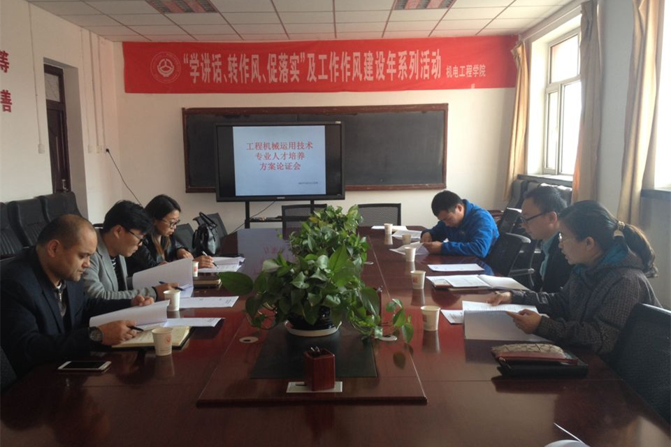 我院于2014年与新疆矿业中等职业学校进行工程机械运用技术专业联合办学,目前第一批学生已进入我院进行学习,为更好地进行教学衔接,10月3日上午在我院会议室召开五年一贯制工程机械运用技术专业人才培养方案论证会。会议由机电工程学院副书记、副院长叶剑锋主持,机电工程学院副院长罗江红,张艳彬、阿拉法特·买尔丹两位老师参加会议,新疆矿业中等职业学校教务处处长李晨、机电系主任哈力甫·乌买尔、机械专业负责人马岩老师参加会议。