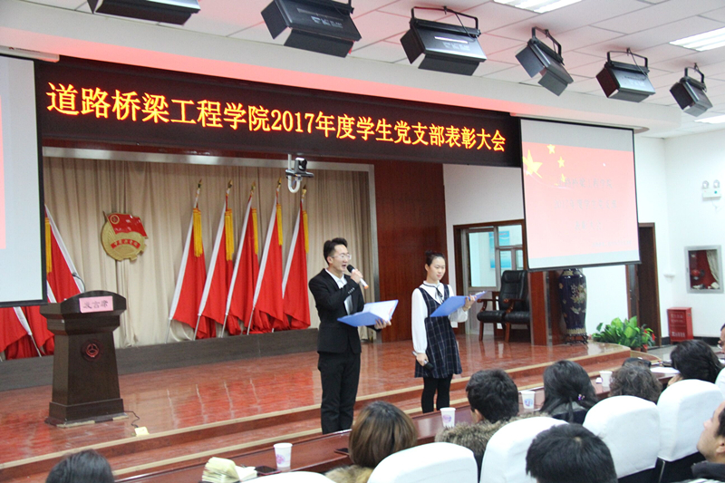 12月11日下午,为表彰和鼓励为学院工作做出贡献的优秀学生党支部成员和先进个人,促进党支部工作的提升和完善,道路桥梁工程学院学生党支部召开2017年度学生党支部表彰大会。分院党总支书记李刚、学生党支部书记吐依洪江·肉孜、全体辅导员和班主任教师及分院学生代表参加了本次大会。