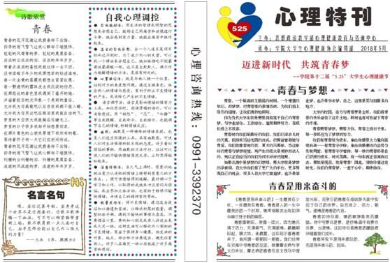 本届“5·25”大学生心理健康节以贯彻落实习近平新时代中国特色社会主义思想为指导,盯紧新疆工作总目标, 结合学院学生工作的实际,围绕“迈进新时代,共筑青春梦”主题,倡导大学生培养健康心理,珍惜青春时光,以饱满的热情和激情为实现中国梦贡献自己的智慧和力量。