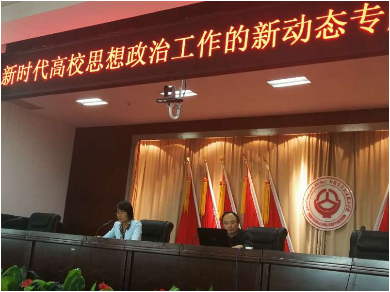为深入贯彻落实习近平新时代中国特色社会主义思想和党的十九大精神,加强新时代我院思想政治理论课建设,9月5日下午,学院组织全体专兼职教师在图书馆多功能厅聆听了由我院挂职副书记、四川交通职业技术学院唐湛副教授主讲的题为《新时代高校思想政治工作的新动态》的专题讲座。讲座由学院党委委员、副院长李绪梅主持。