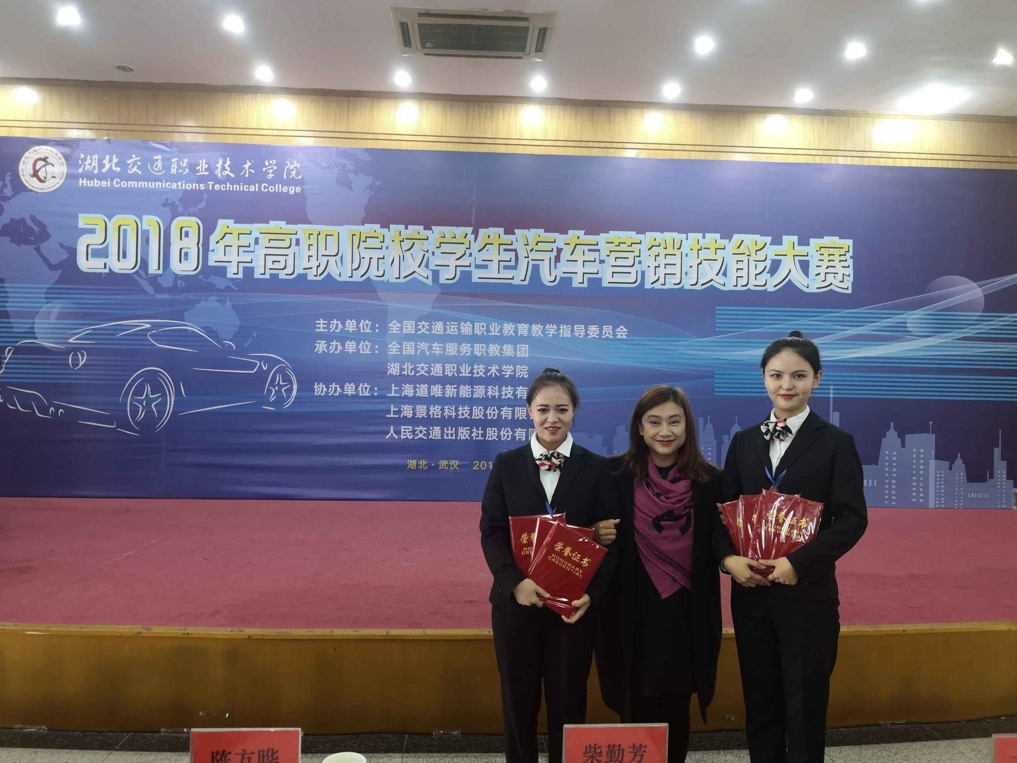 经过激烈的角逐,我院刘文静老师带领的汽销CE171班唐君婷和汽销D171班阿也克勒木·胡加提汗两位同学组成的代表队荣获汽车营销策划技能大赛赛项单项二等奖,汽车销售综合赛项单项三等奖及团体三等奖的好成绩。