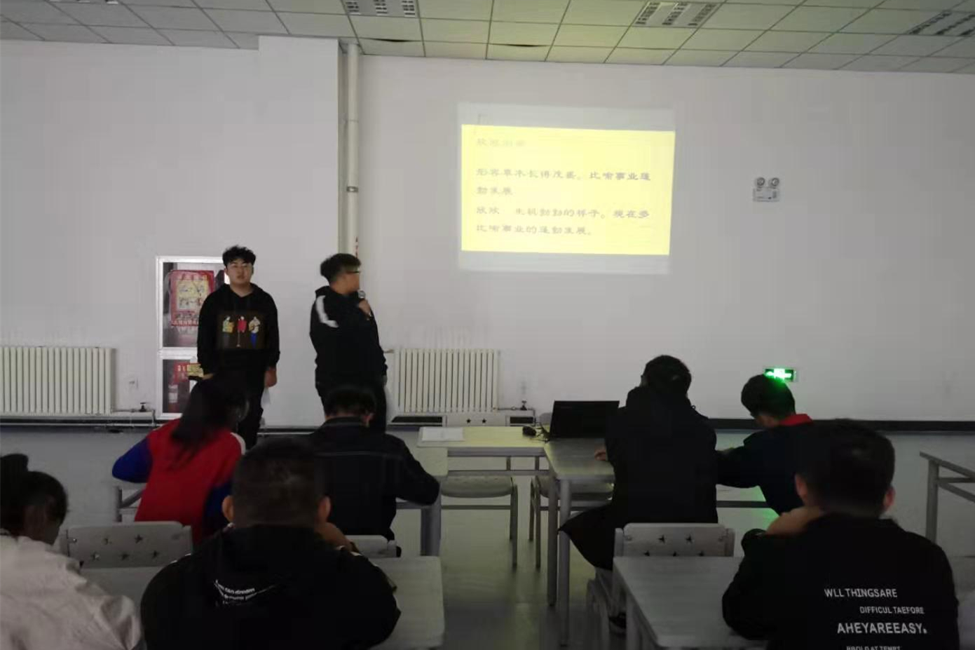 本次活动包括三部分:学习成语、朗读唐诗和了解时事。主持人通过小视频,带领大家学习成语,理解其含义及出处,由结对子学生帮助讲解使用方法,并让社员练习造句。在知识的海洋里,互帮互助的学生们认真的“讲”和专心“学”,展现了学生的良好风貌;同学们大声朗读唐诗《早春呈水部张十八员外》,积极向“小老师”请教,并背诵比拼,将此次社团活动推向了高潮。