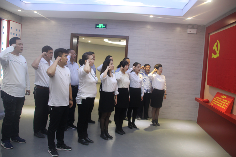 全体党员同唱国歌中,主题党日拉开了帷幕。全体党员在党支部书记杨跃庆同志的带领下,面向党旗宣誓,重温入党誓词,党员代表张龙发言:“重温入党誓词,就是重温当年的决心和信念,始终铭记入党的誓言,坚守自身的政治责任。”随后全体党员一起观看了《1949年大阅兵》。