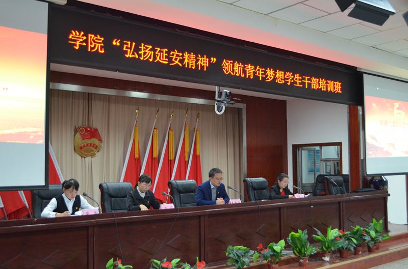 为深入学习贯彻习近平新时代中国特色社会主义思想和党的十九大精神,进一步加强学院团学干部队伍建设,在团员青年中培养一批有理想信念、政治觉悟、责任担当的团学干部,10月15日-11月8日,学院举办了“弘扬延安精神,领航青春梦想”团学干部培训班,共有265名各级学生会干部及班级团支部书记参加了培训。