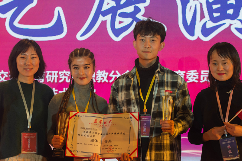 11月18日至20日,中国交通教育研究会职业教育分会素质教育委员会2019年会暨第二届全国交通职业院校大学生综合素质大赛与文艺展演活动在湖南交通职业技术学院隆重举行,来自全国的26所交通职业院校齐聚一堂,44名参赛选手同台竞技,经过激烈角逐,最终,我院参赛选手李帅及菲若拉·居拉提两位同学凭借两个赛项位列第四、第六,综合成绩排名第十的优异表现,最终荣获团体三等奖,此次获奖排名也是我院参加该项比赛以来取得的最好成绩。