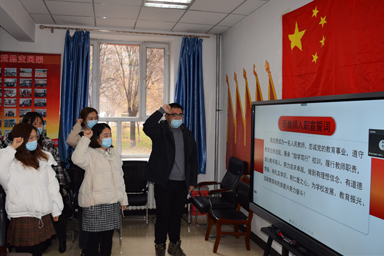 董晋、刘春歌等新教师在国旗下开展了“四有教师”宣誓活动。