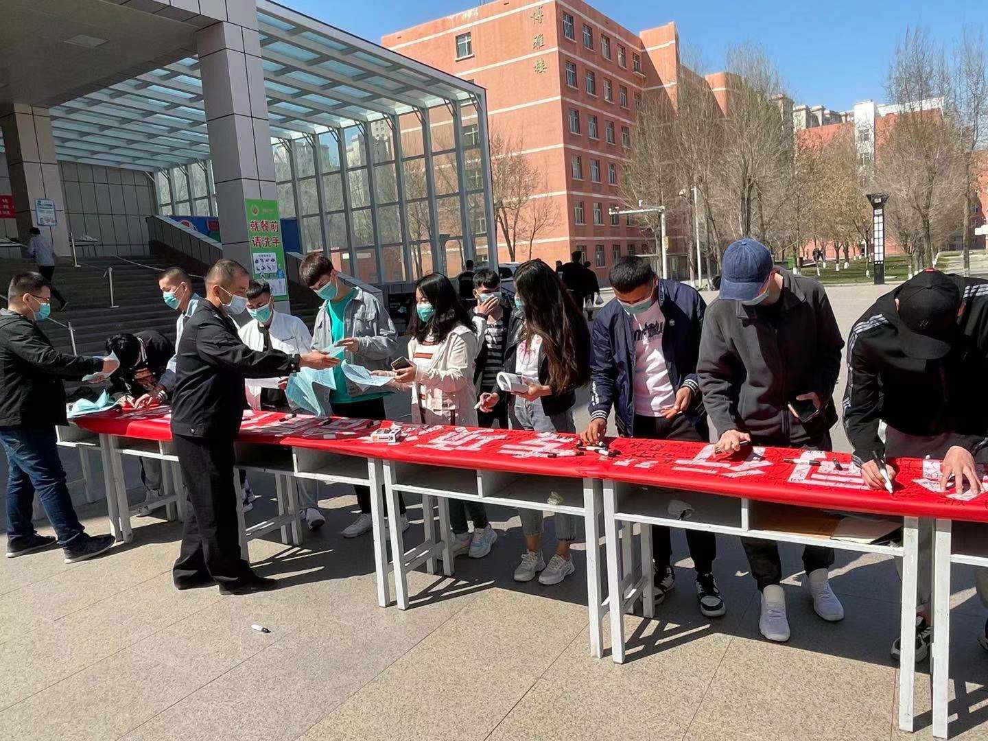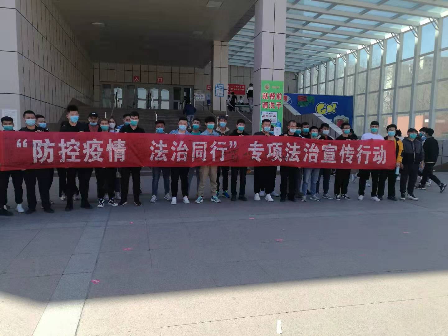 中午,学院保卫处、校园警务站工作人员在综合食堂门口发放法律知识宣传资料400余份,向师生员工宣传总体国家安全观、《宪法》《国家安全法》《反恐怖主义法》《民法典》《新疆维吾尔自治区去极端化条例》以及疫情防控要求等内容,并组织二百余名师生员工在内容为“防控疫情 法治同行”专项法治宣传行动的横幅上签字以表决心:国家安全,人人有责。