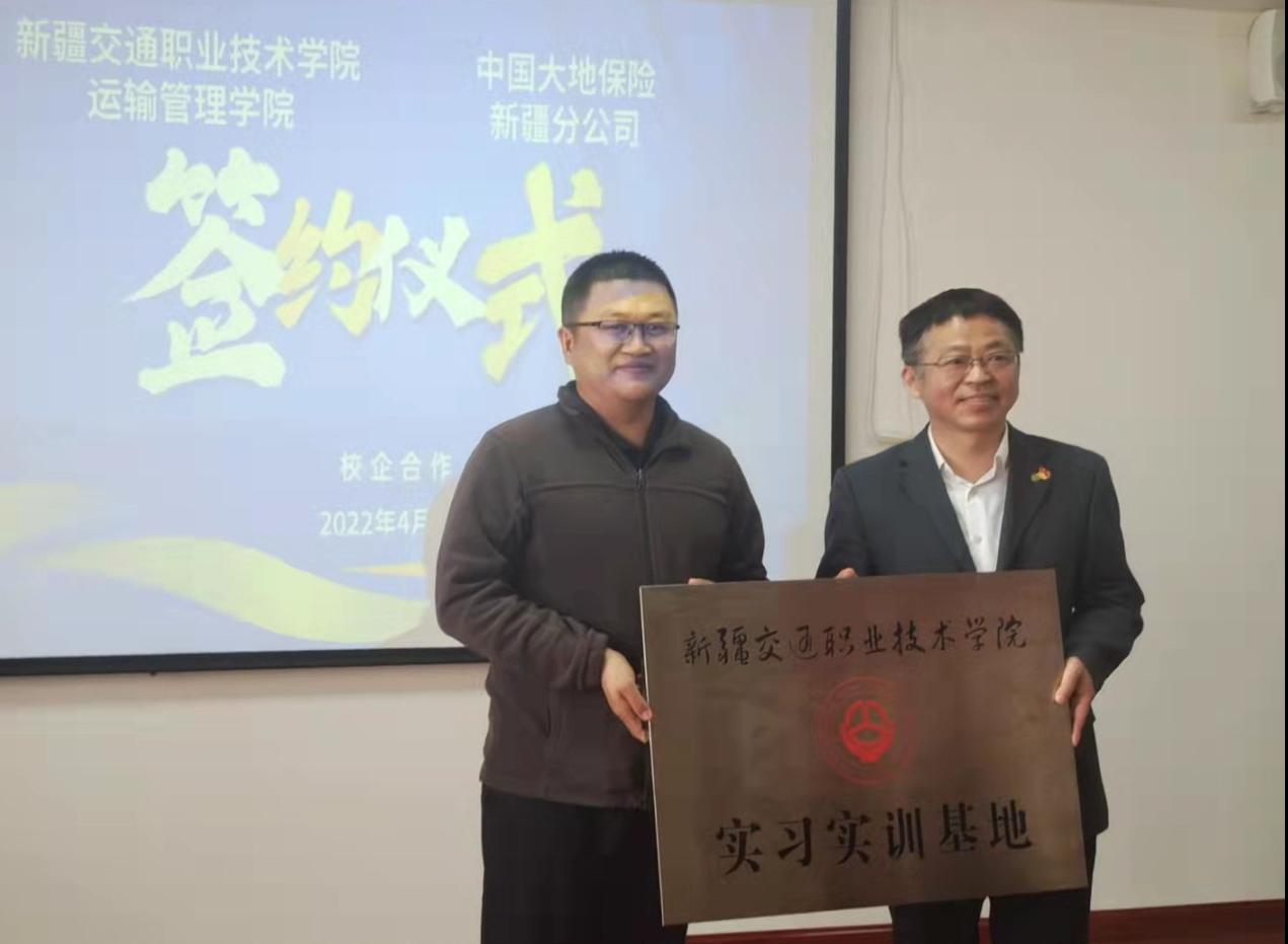 4月21日,运输管理学院与中国大地财产保险股份有限公司新疆分公司进行了校企合作签约仪式暨校外实训基地挂牌仪式。