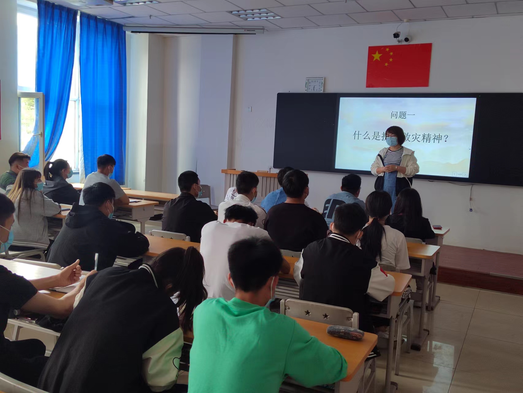 5月12日中午,学生党支部书记曹静老师为入党积极分子讲授党课——《抗震救灾精神》,通过一幅幅灾害的照片和玉树地震救灾视频,大家热烈讨论。道桥D215班杨浩杰说:“作为一名当代青年,安全无小事,从我做起,积极学习防灾减灾知识,愿意做一名防灾减灾宣传员,让更多人参与防灾减灾,为创建美好校园贡献一己之力。”
