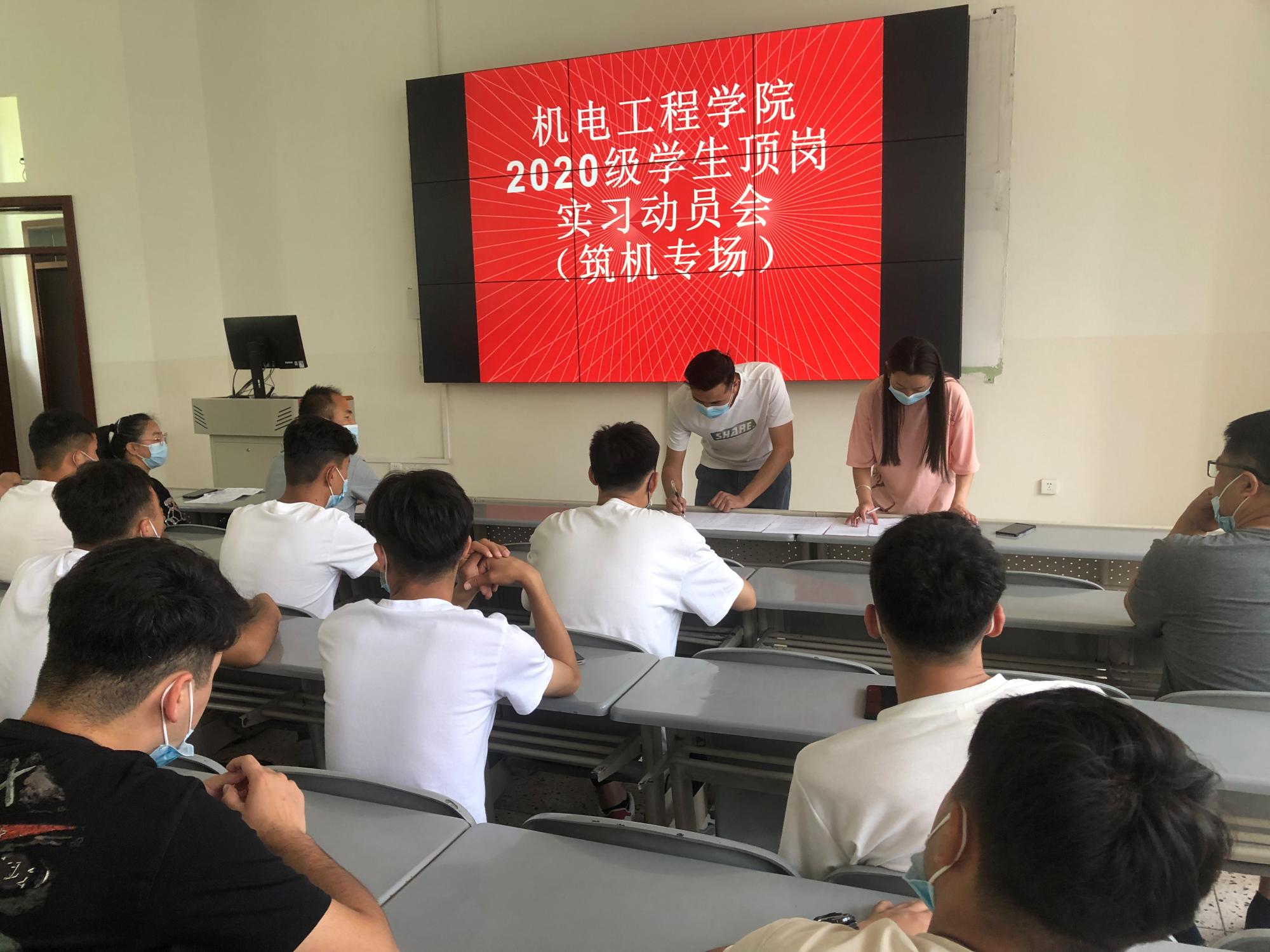 为做好疫情防控形势下学生顶岗实习工作,为更好的做好2020级顶岗实习学生相关工作安排,机电工程学院按照各专业分批次召开顶岗实习动员会。5月29日,机电工程学院在学院学术报告厅召开了筑路机械专业的顶岗实习动员会。