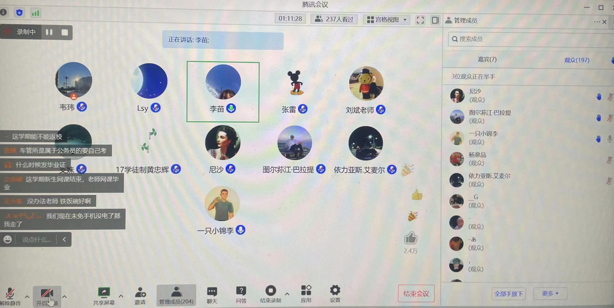 会议最后为2022级新生开通了问答环节,新生们纷纷举手提问,就专升本考试、现代学徒制企业种类、岗位实习种类等问题向参会教师请教。本次线上专业介绍会运用腾讯研讨会形式开展,进一步拉近新生与老师之间的距离,充分填补了新生大学生活适应过程的空白,为2022级新生重返校园做积极准备工作。