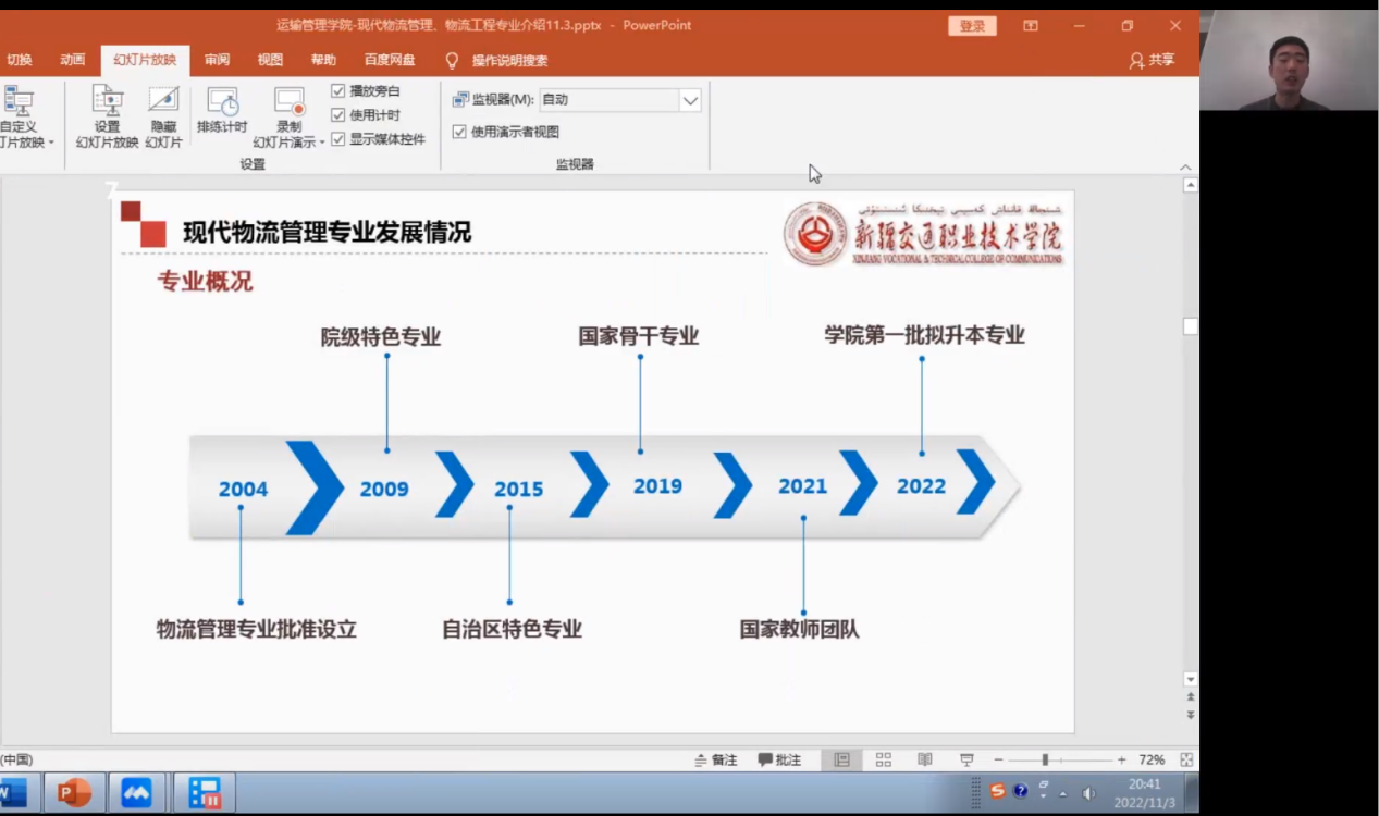 为了让2022级新生更好地了解学院、了解专业,加深师生了解,拉近师生关系,对大学学习和生活有全面的认识和规划,10月28日至11月3日,运输管理学院6个专业通过线上会议云见面方式,分别开展了新生专业宣讲会。