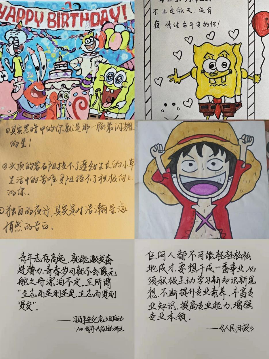 此次活动本着“互换温暖,延续美好”的原则,将收集来的暖心卡片、暖心视频、暖心卡通图画等106份温暖传递给正在家中上网课的同学们,让同学们感受到伴随着第一场雪带来的暖暖的爱心。养护D221班麦尔哈巴·约麦尔同学收到了来自学生会团支部的卡片,她说:“卡片上写着,青春处于人生积累阶段,需要像海绵吸水一样汲取知识,珍惜大好学习时光,求真学问,练真本领,在学习阶段把基石打深,打牢,必将大有可为,也必将大有作为。收到这张卡片,深有触动,作为新时代的青年,生逢其时、重任在肩,施展才干的舞台无比广阔,实现梦想的前景无比光明,作为新生的我要不断学习、不断实践、不断创新,厚积知识、丰富学识、增长见识,在实现民族复兴的赛道上奋勇争先。”
