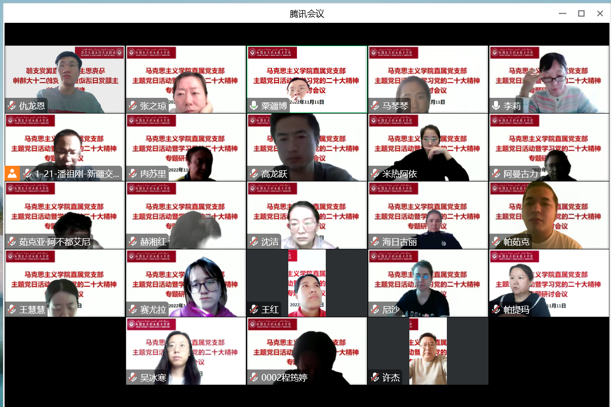 11月11日下午,马克思主义学院直属党支部通过腾讯线上会议,开展了主题党日活动暨学习党的二十大精神专题研讨。