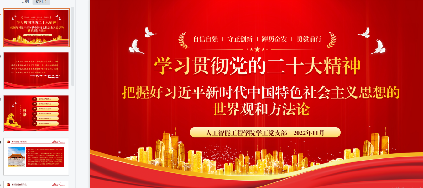 会议围绕宣传贯彻党的二十大精神展开,学工党支部的支部书记和支委从习近平总书记关于青年工作的论述、把握好习近平新时代中国特色社会主义思想的世界观和方法论、领会和践行社会主义核心价值观等多角度深化同学们对于二十大精神的理解与探索,全面贯彻二十大精神的落实。