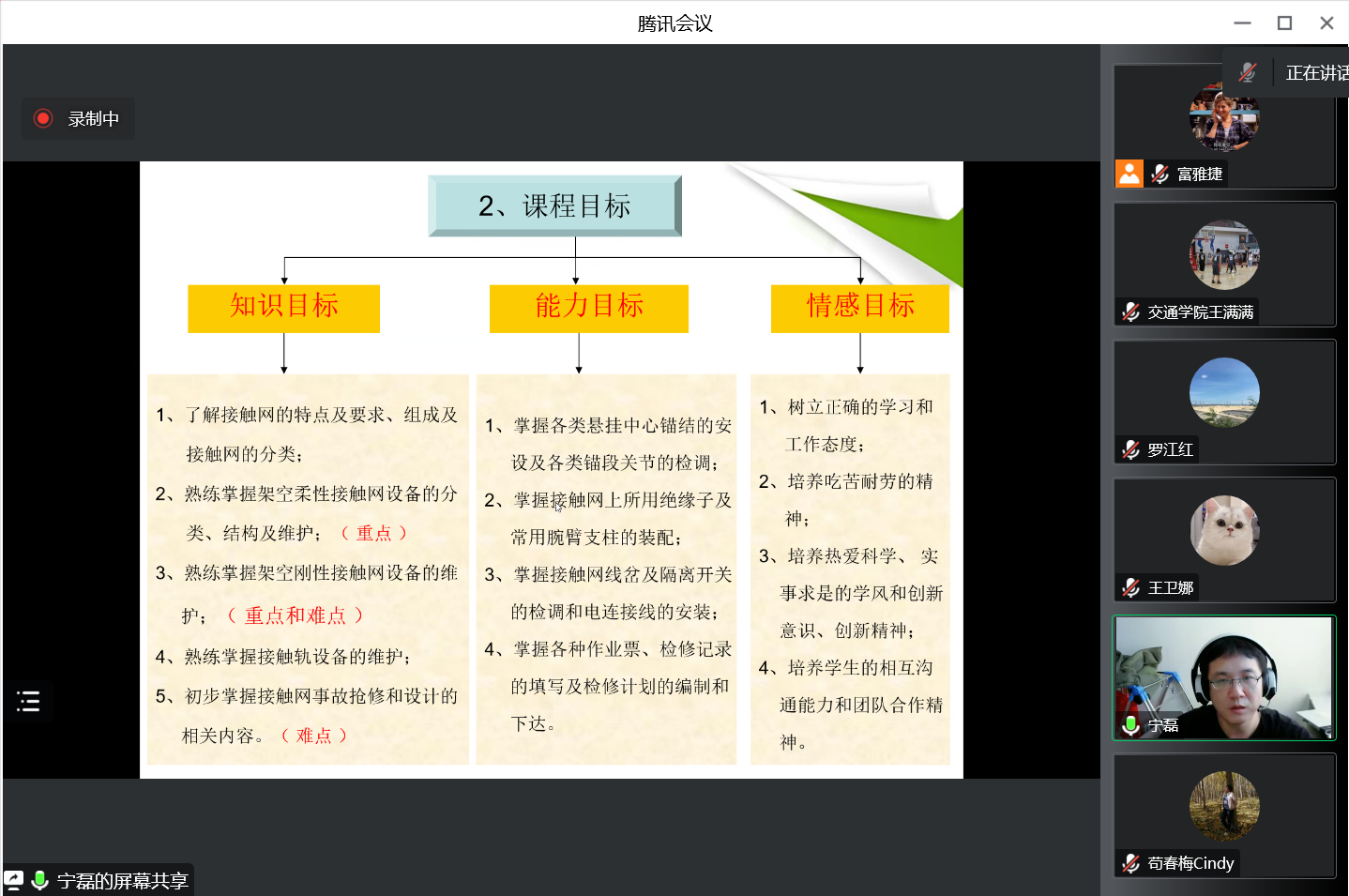 为进一步提高教师教学质量,夯实教学基本功,深化课程改革,助力学院“双高”建设,机电工程学院分别于11月28日、12月2日采用腾讯会议的方式开展两场线上“说课程”比赛。