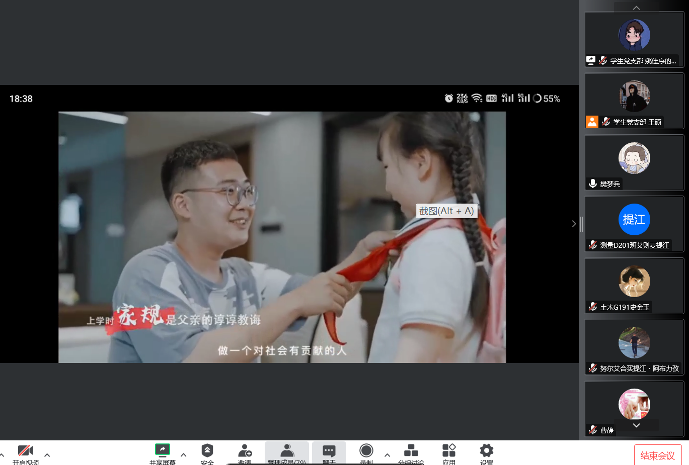 在清廉家风故事分享会环节,全体师生党员观看了《家风》、《家风传承 润物无声》两部微视频,大家感触颇深,并围绕什么是家风家训、传承良好家风的重要意义以及如何传承良好的家风家训等话题相互交流。专业基础教研室党支部书记纪丽君说:“良好的家风既是砥砺品行的‘磨刀石’,也是拒腐防变的‘防火墙’,师生党员要把廉洁齐家贯穿到家庭教育和日常生活中,做清廉家风的传承者、守护者、倡导者,助力保持平稳健康的经济环境、国泰民安的社会环境、风清气正的校园政治环境,为深入学习宣传贯彻党的二十大精神营造良好氛围。”