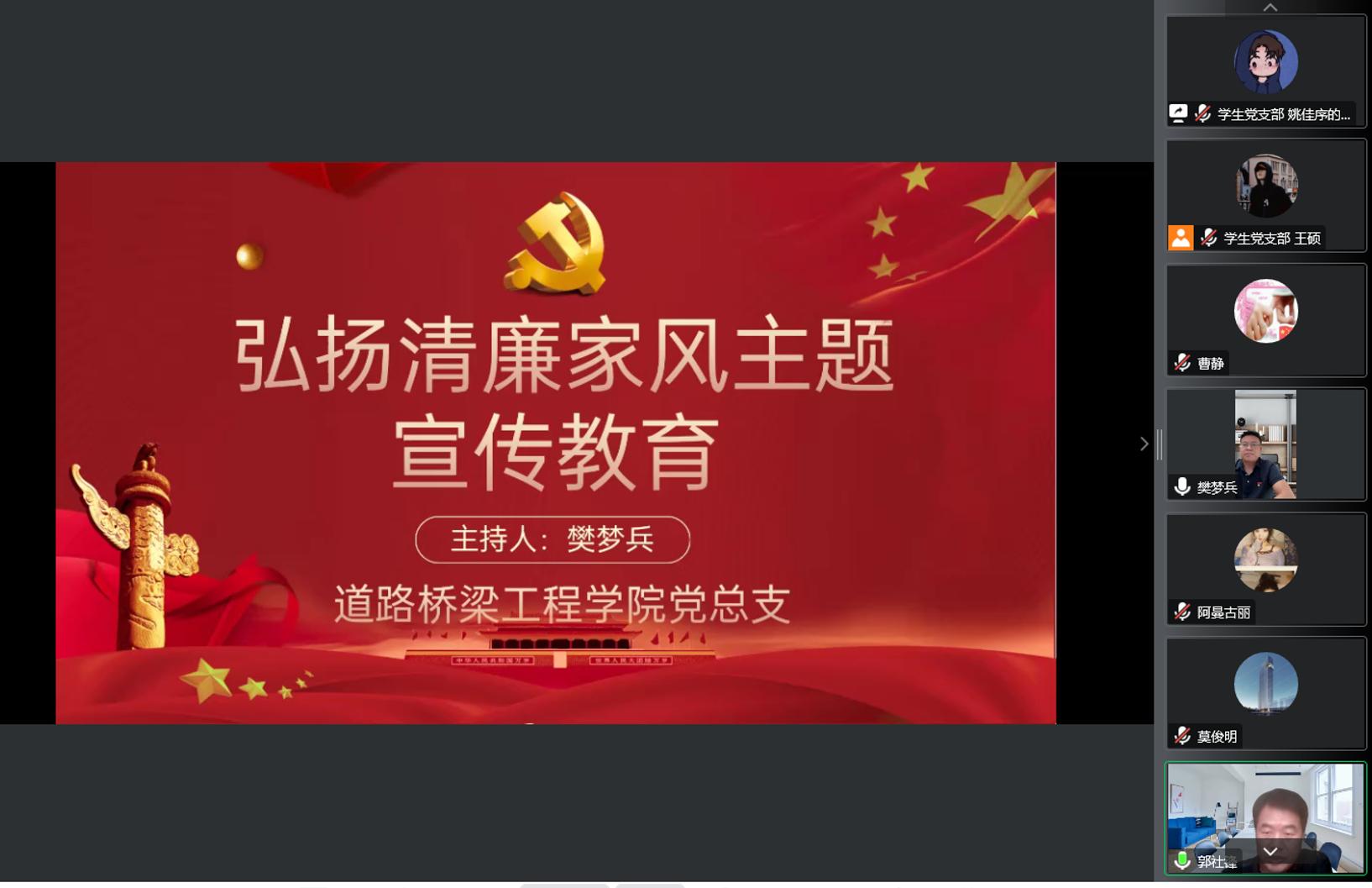 道路桥梁工程学院党总支开展弘扬清廉家风主题宣传教育活动