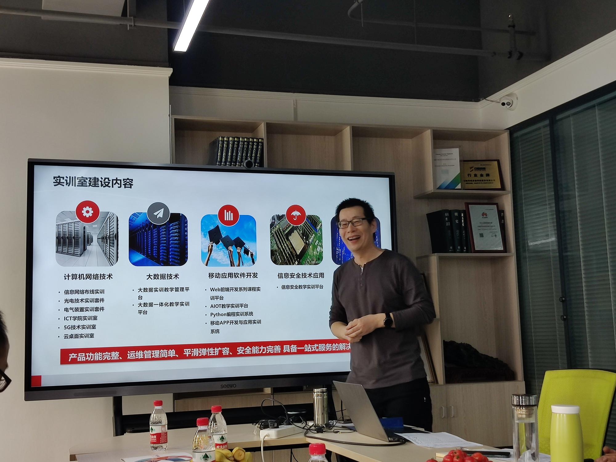 座谈会上,新疆华域卓信科技股份有限公司总经理秦新伟、副总经理陈云、丁志强等对分院一行人员热情接待并组织开展企业参观和座谈交流,陈云就企业的发展历程、主要业务、对学院实训室建设、为教师赋能等情况进行了详细介绍,同时热切希望通过搭建校企合作平台,能有更多优秀的毕业生来企业发展。