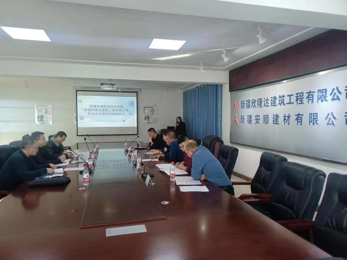 新疆欣隆达建筑工程有限公司总经理闫伟对学院专业群的毕业生综合能力给予充分肯定,对我校师资力量高度认可。樊梦兵介绍学院人才培养、实习就业等情况,双方围绕科技研发、人才培养、实训基地等方面进行交流,并签订了校企框架合作协议,进一步实现强强联合、产教融合、优势互补,促进产业链、教育链、创新链的有机衔接、深度互促与贯通融合。