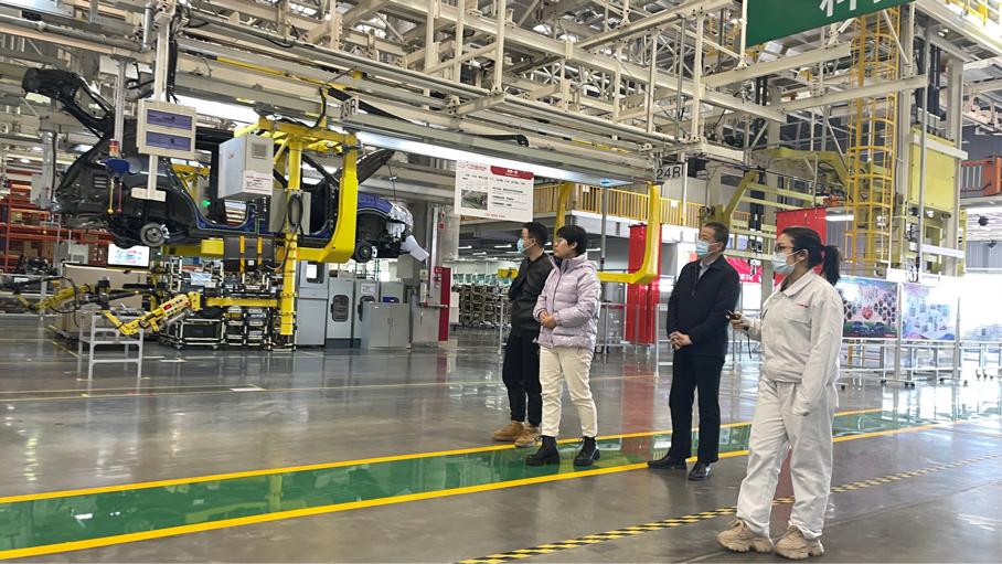 在公司人事部负责人带领下,一行人参观了企业生产车间,解说员为学院老师们介绍了车间的日生产量、生产设备运行情况以及线上操作工的工作情况,生产车型、车间生产线速、车间环境等。并为老师们提出的问题进行细心的答疑解惑。