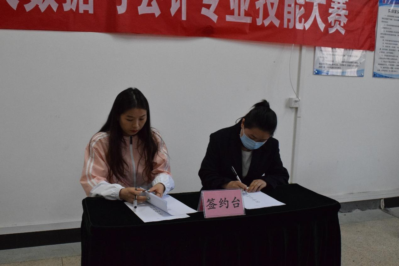 肖微作为企业代表对赛事的成功举办及在赛项中取得优异成绩的选手表示热烈祝贺!现场,她与获得一等奖选手完成现场签订实习劳动合同仪式。
