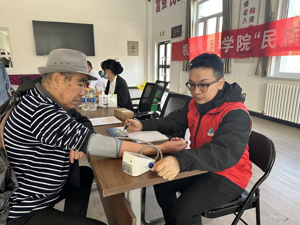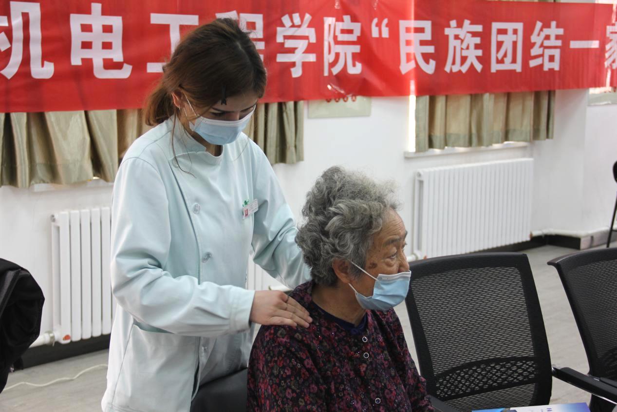 为推进“新时代文明实践”志愿服务活动走深走实,大力弘扬“奉献、友爱、互助、进步”的志愿者精神,4月11—12日,机电工程学院分团委联合新疆长安中医脑病医院医护人员在学院家属区老年活动中心,开展了义诊服务进社区志愿服务活动,为社区居民带去了关怀和温暖。