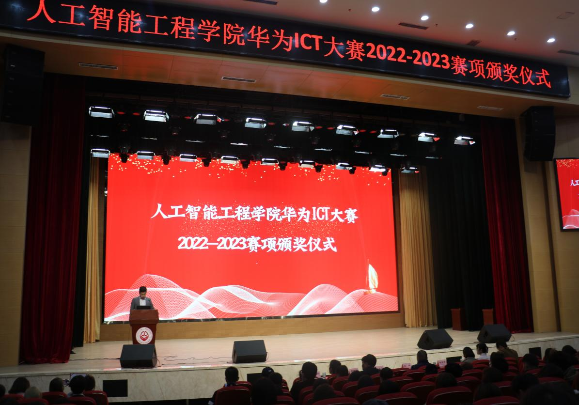 4月23日下午,华为ICT大赛2022-2023自治区实践赛颁奖典礼在学院大礼堂举办。