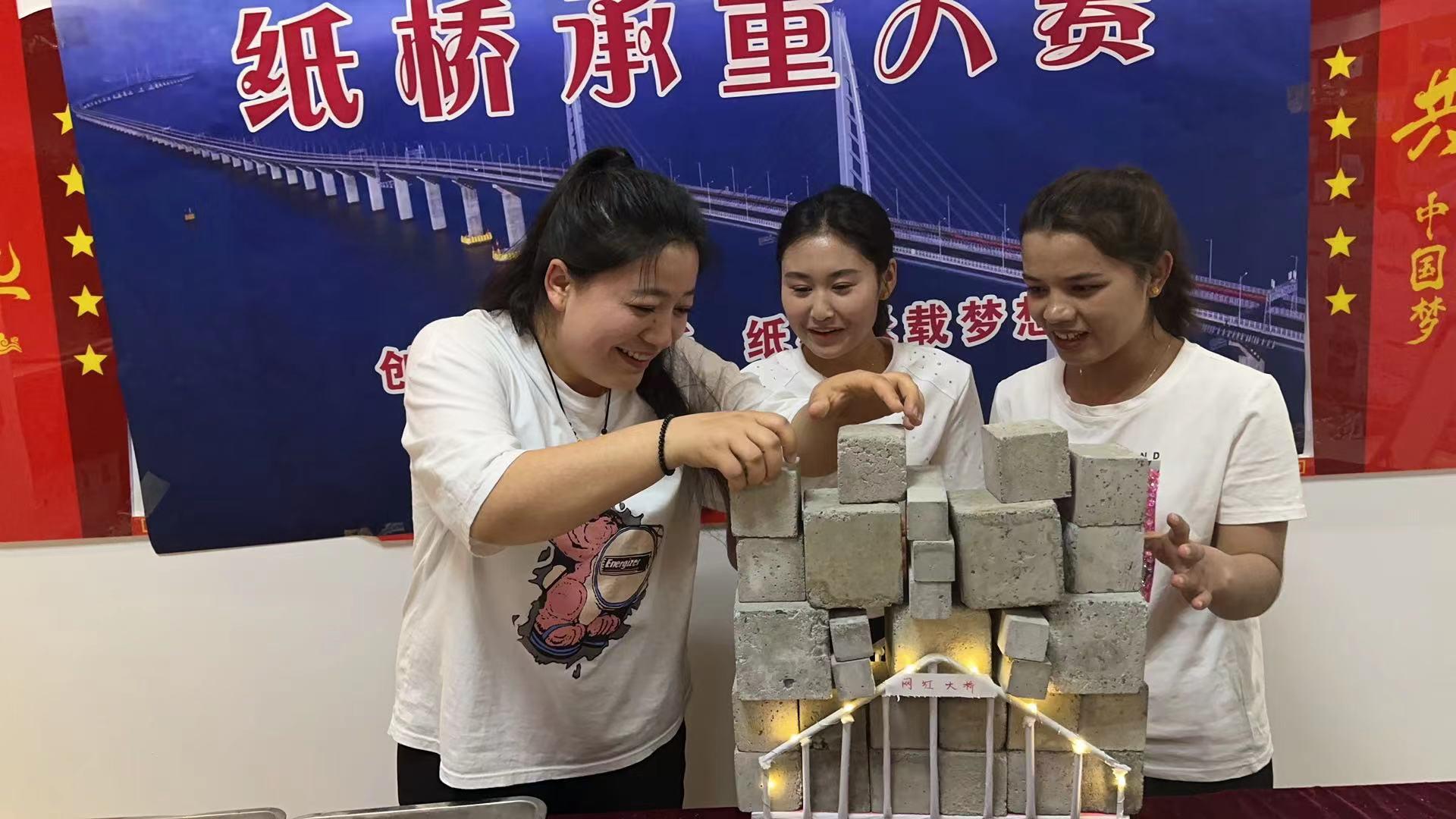 经过激烈的角逐,最终来自监理D212班的木尼热·莫合太、凯迪日耶·吐尔孙艾力、努尔比亚·麦麦提依明的“网红桥”和来自监理D211班殷昊凯、潘宏疆、郑姜霞的“金银(精英)大桥”获得一等奖,两队的作品都以300多克的纸桥承受了37.8千克的重量!可谓“一纸千斤”!