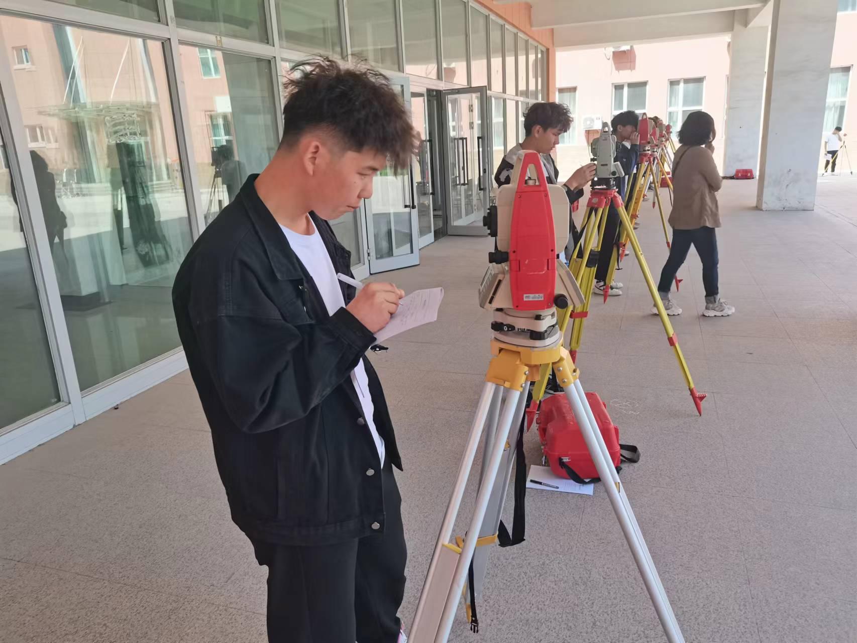 5月23日下午,道路桥梁工程学院测量测绘教研室教师在土木楼前测量实训场地进行了2022级铁道工程技术专业三个班级79人次的测量等级工操作考试。
