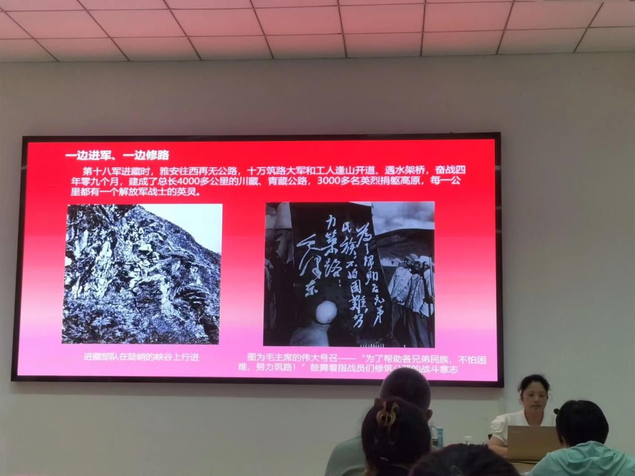 参观结束后,四川交职院马克思主义学院文莉副教授为大家讲授了一场题为《“弘扬‘两路’精神,赓续红色基因”》的精彩专题讲座。文老师的讲座图文并茂,详细介绍了川藏公路与青藏公路修建的来龙去脉,新中国第一代筑路工人们无私的奉献精神以及经历的艰苦卓绝的修路历程,使大家深刻了解并领会了一不怕苦、二不怕死、顽强拼搏、甘当路石、军民一家、民族团结的“两路”精神。
