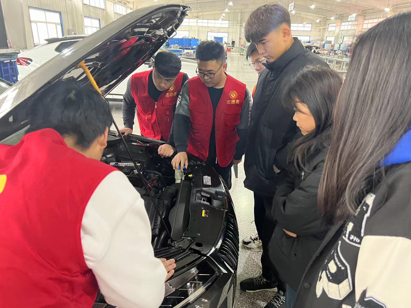 活动中,“2023年自治区职业院校技能大赛选拔赛”2023汽车技术竞赛项中二等奖获得者赵冰岳、三等奖获得者李亚辉耐心讲解了关于汽车的一些基本知识、技能竞赛中的一些经验和心得,为现场2023级新生答疑解惑。