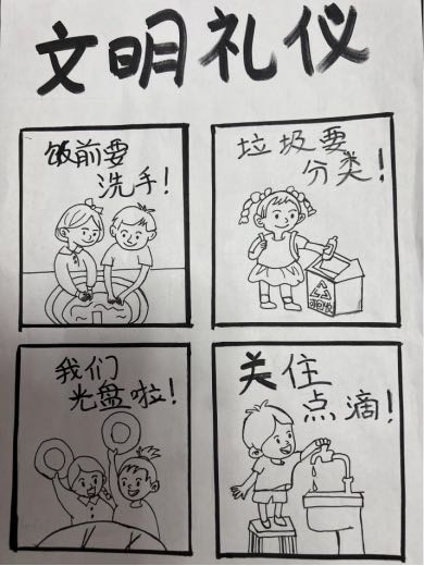 为进一步引导我院学生积极践行社会主义核心价值观,提高学生思想道德水平和文明素养,引导学生争做新时代文明践行者,营造良好文明育人环境,人工智能工程学院分团委、ICTS智慧思政工作室于3月27日—4月3日开展“文明礼仪伴我行”漫画绘制活动。