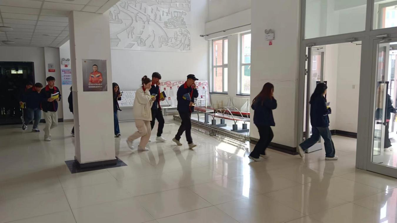 “不要慌乱,弯腰低头,捂住口鼻,撤离教室”,在任课老师和辅导员的带领下,学生以班级为单位按照安全逃生路线疏散至土木楼外集合点。