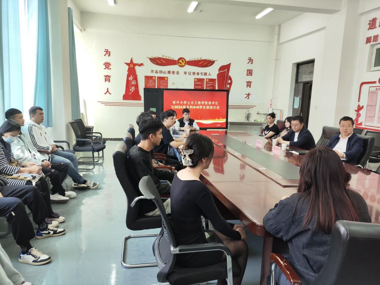 座谈会上,樊梦兵介绍了我院本科“4+0”专业人才培养、实习实训、社会服务、教学科研等建设情况。双方围绕“4+0”联合培养师生情况、2024届毕业生就业、院院合作、专业建设、实验室建设、科研合作、师资队伍等方面进行了深度交流。同时,与土木G201班学生进行面对面座谈,杨江平书记关心询问学生们关于毕业设计、实习就业等方面的情况,并逐一耐心回答了同学们的提问。