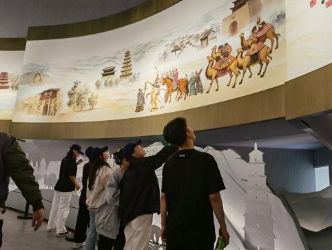 进入乌鲁木齐文化中心展览馆大厅,沿着红色足迹,同学们一起参观学习了“习近平新时代中国特色社会主义思想阳光照耀天山主题展”,文物分别以历史、地理、人物、生活等进行分区展示,再现了悠久的文明发展进程,历史气息扑面而来。同时用碑文篆刻、模型仿制等互动的方式让学生感受其中奥秘。同学们真切感受和追忆了红色峥嵘岁月的风貌,了解了党的光辉历史,深切体会到如今幸福生活的来之不易,为学生进行了一次生动而深刻的爱国主义和家国情怀教育。