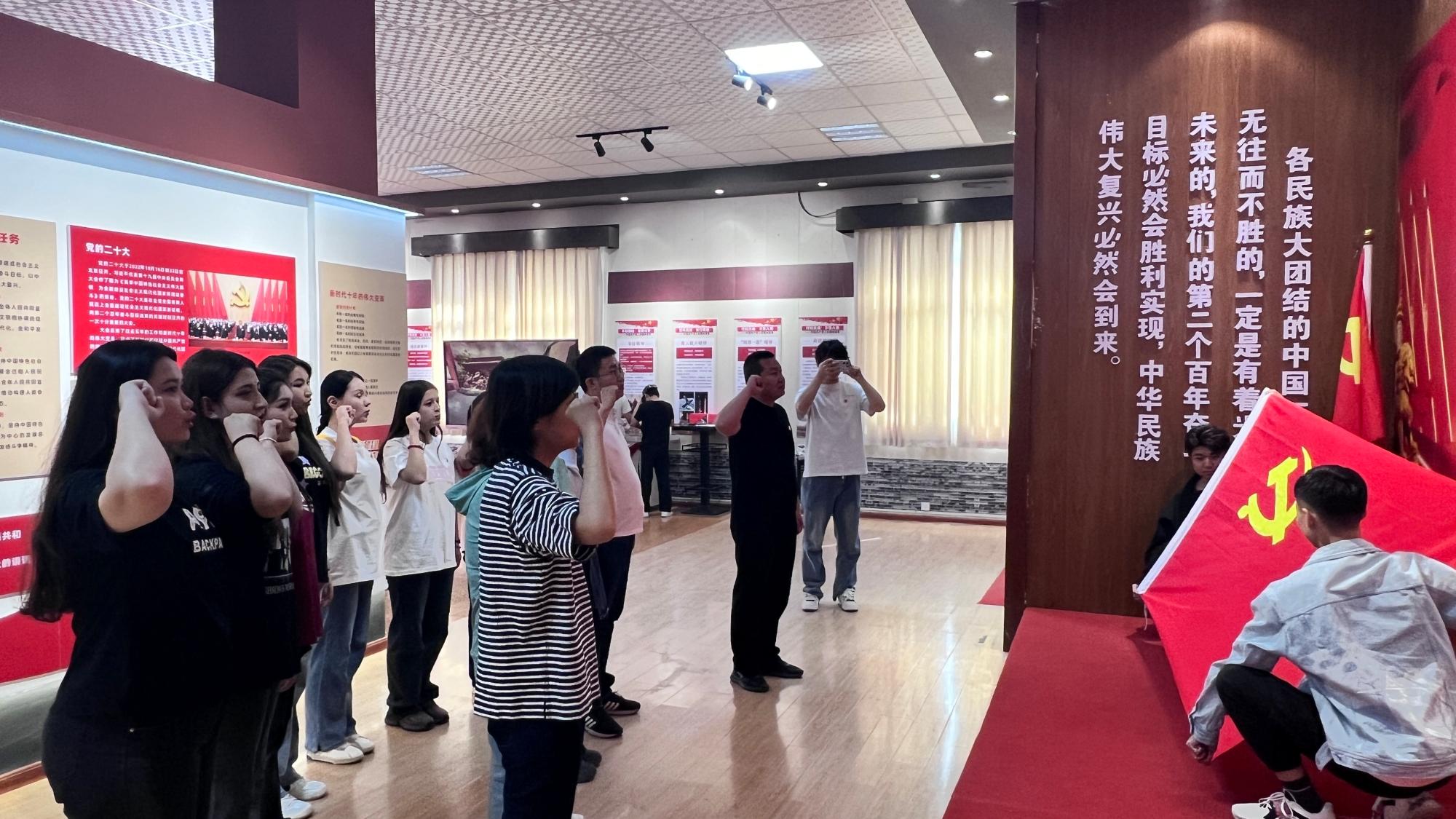 学生预备党员阿娅拉·吉盖在交流发言时说:“通过此次参观,我对中国共产党由小变大、由弱变强,对祖国取得的伟大成就从内心感到骄傲和自豪,对新疆社会稳定和民族团结大好局面感慨万分。”